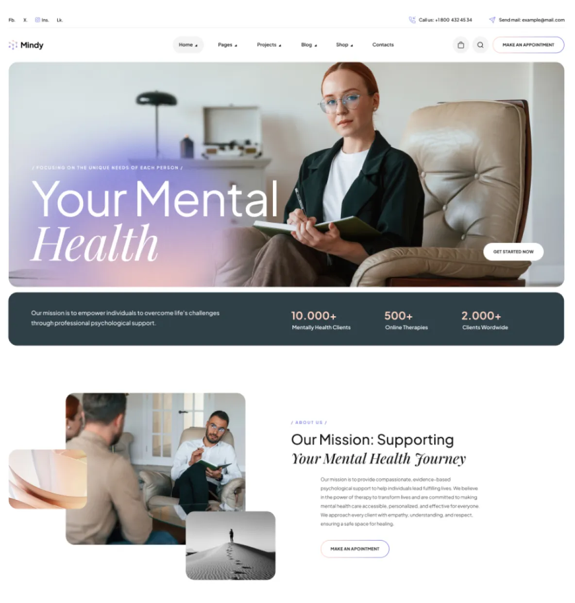 Inner pages also includes about us, services, contacts, FAQ, coming soon, 404, mission, team, etc.